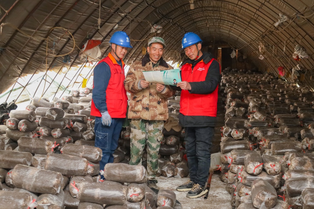 12月9日,焦作黃莊鎮訾楊門村的蘑菇大棚內暖意融融,整齊擺放的菌包上長滿了傘狀的蘑菇。當前正值蘑菇種植采收旺季,國網焦作供電公司組織黃莊中心供電所焦裕祿共產黨員服務隊走進蘑菇種植培育大棚內,幫助排查灌溉線路及照明設備隱患,向種植戶宣傳冬季安全用電知識,提供用電指導,以實際行動助力農民群眾增收致富。