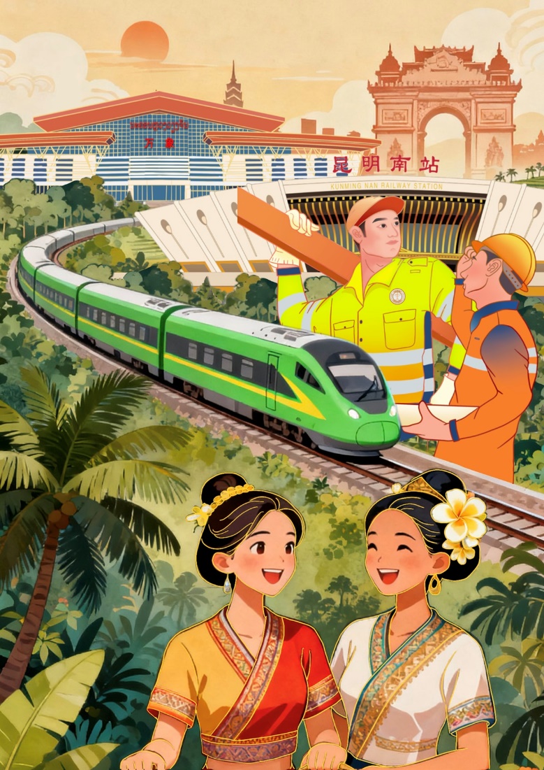 “民心相通”架起人文交流“新橋梁”。中老鐵路的繁榮,不僅體現在數據與產業上,更體現在兩國人民的日常交往中。四年來,累計開行2674列國際旅客列車,輸送64萬余名來自全球120多個國家的旅客,“坐著火車游中老”成為跨境旅游新風尚。從潑水節專列到“星光·瀾湄號”跨境旅游列車,從老撾留學生乘火車赴華求學,到中國技術團隊在老撾培養首批32名持證火車司機,鐵路串聯起兩國人民的生活日常,更是兩國人民技術標準、服務理念、生活方式上的深度互學互鑒。民心相通,是高水平對外開放的深層底色。當老撾民眾使用鐵路APP便捷購票,當中國游客在瑯勃拉邦車站品嘗“舌尖美食”,當兩國邊檢部門通過數據共享將通關時間縮短至50分鐘,這些細節折射出的,是“一帶一路”倡議“共商共建共享”精神的生動詮釋。