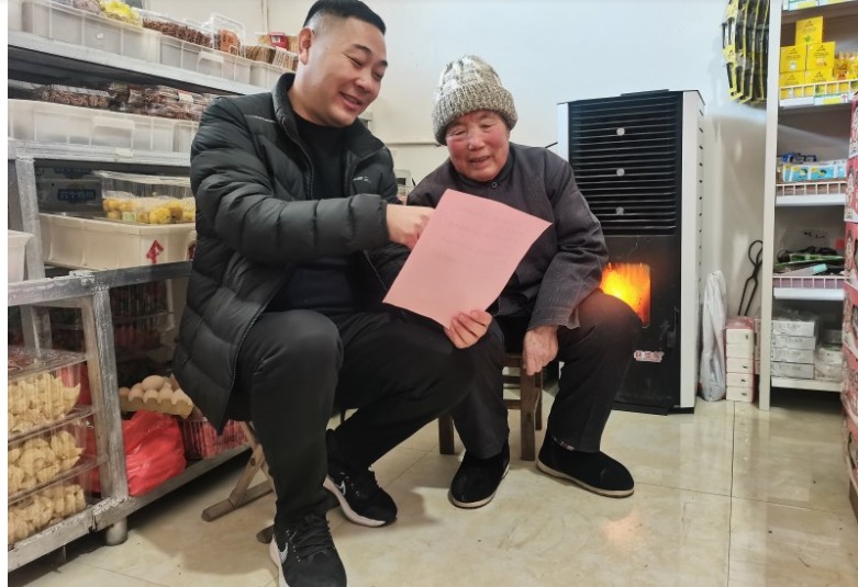 “大娘,我看這取暖爐又燒起來了,咱燒爐子之前這管道碳灰都清理一遍沒有。屋里燒了取暖爐,咱還是要時不時的給房間通通風,關系咱自身安全的事,咱可不能有半點馬虎。”在蘭陵鎮橫山村彭繼民的店內,第六服務站稽查員周軍對彭繼民的母親叮囑到。
