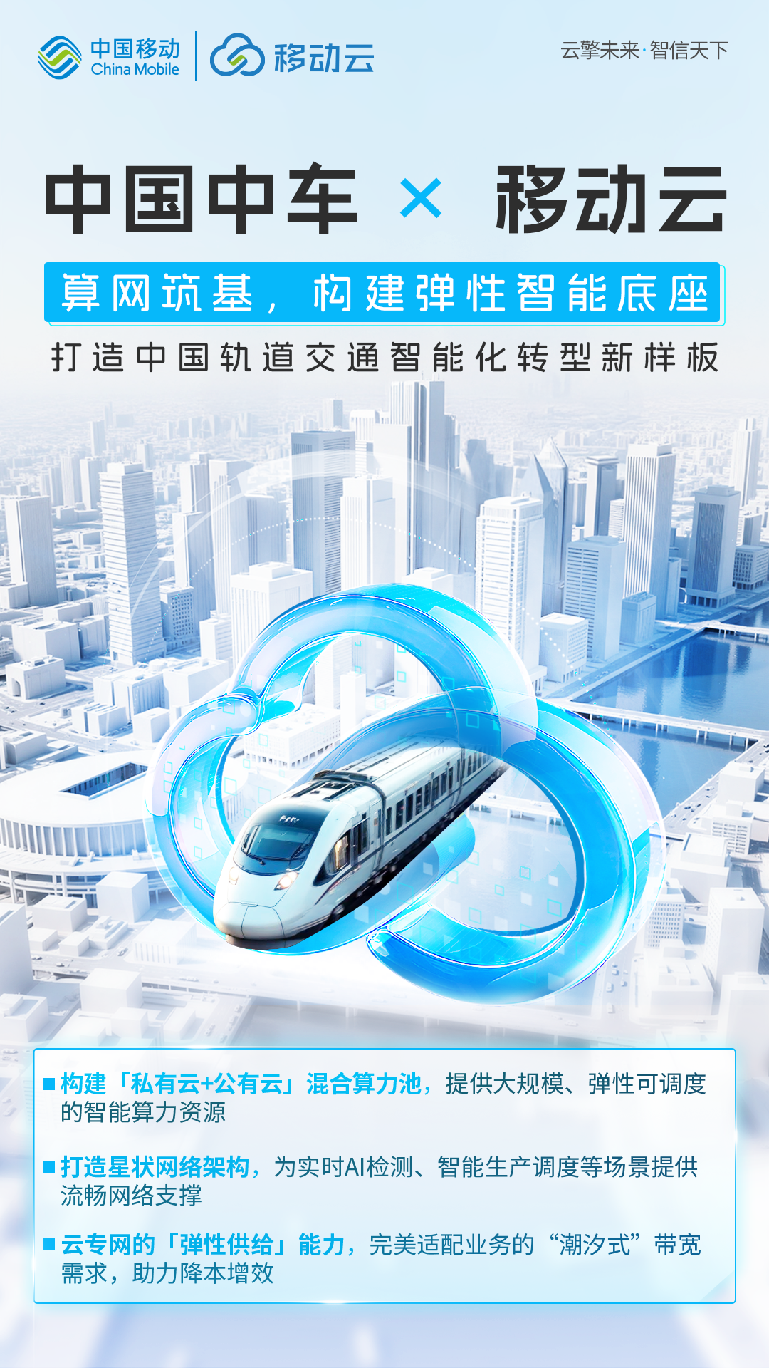 針對行業轉型痛點,中國移動攜手中國中車創新打造了“算網一體”智算資源服務方案,以“云智融合”全棧產品能力,鋪設智能化轉型“高速路”,為軌道交通行業數智升級提供了新樣板、新思路。