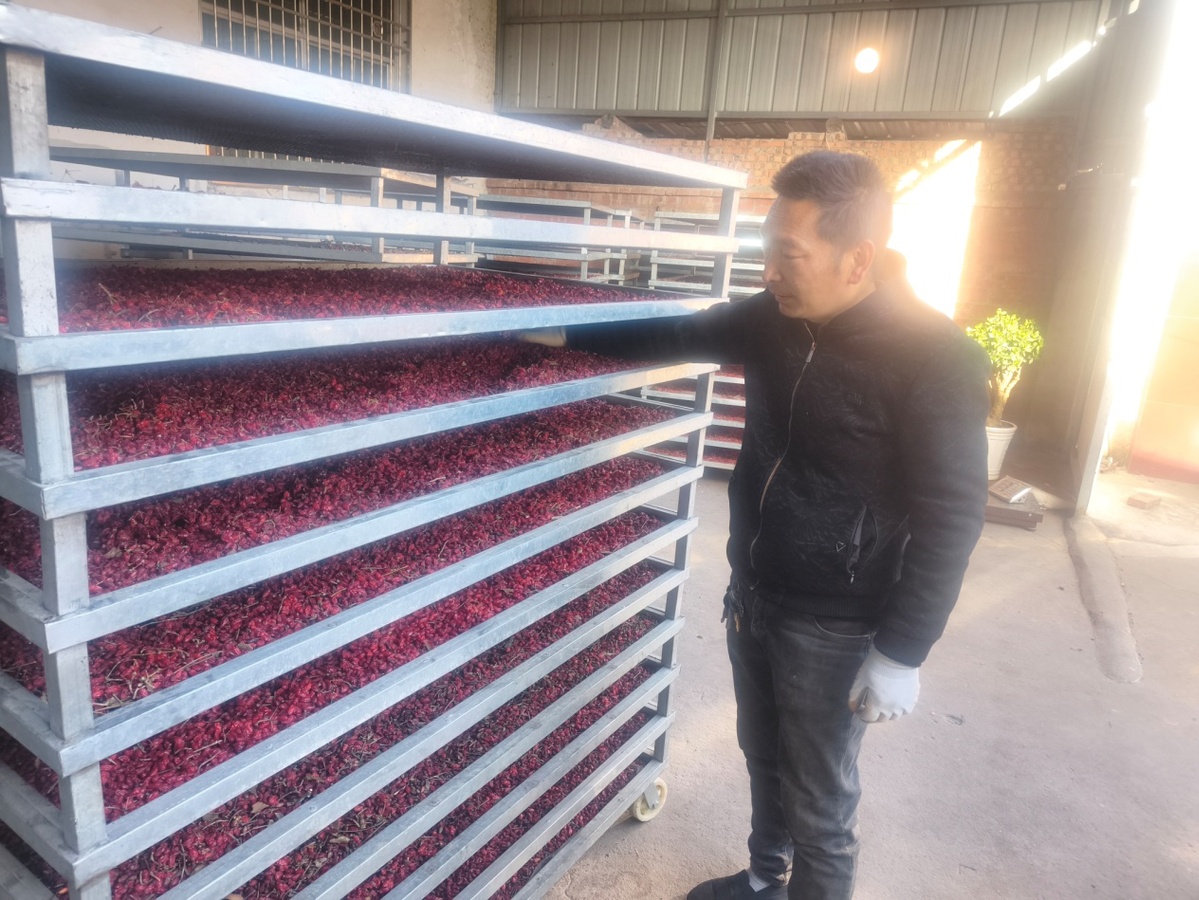 跟著余澤航的腳步走進烘干房,陣陣藥香撲面而來。架子上整齊碼放的鮮果,經過去雜、剝皮、清洗等工序后,正在烘干設備中慢慢脫水變紅。“以前靠太陽曬,遇到陰雨天就容易發霉,現在有了烘干房,品質穩了,收購價也高了!”余澤航指著運轉的設備說,現在加工好的山茱萸干貨,一斤能多賣七八塊,比原始加工劃算多了。