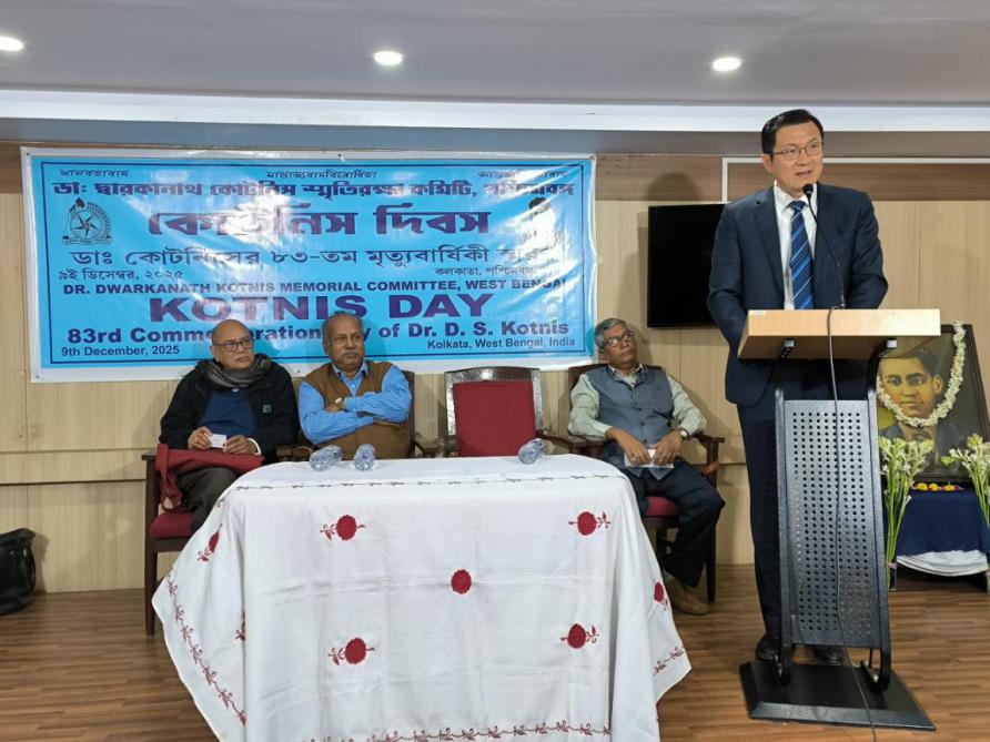 徐偉表示,在中華民族遭受日本軍國主義侵略的危難時刻,以柯棣華大夫為代表的印度援華醫療隊英勇奔赴中國救死扶傷,體現了超越國界和種族的大愛,書寫了中印攜手抵抗法西斯侵略者的佳話。今年是中國人民抗日戰爭暨世界反法西斯戰爭勝利80周年,中國永遠不會忘記為抵抗侵略提供幫助的國際友人。總領館愿與印東各界朋友一道,傳承柯棣華精神,不斷夯實兩國友好民意基礎,共同推動中印關系健康穩定發展。