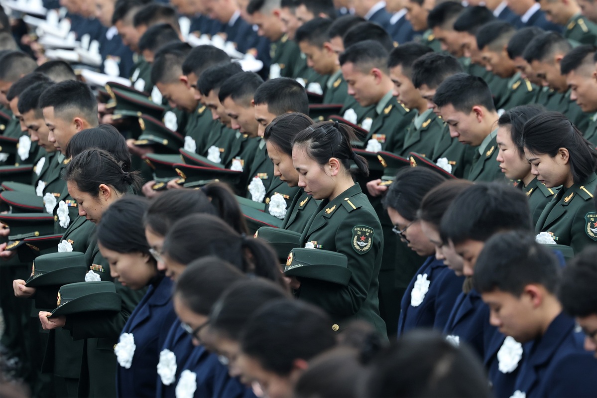 12月13日,人們在南京大屠殺死難者國家公祭儀式上默哀。中國日報記者 王壯飛 攝